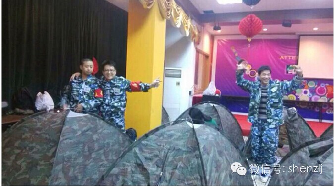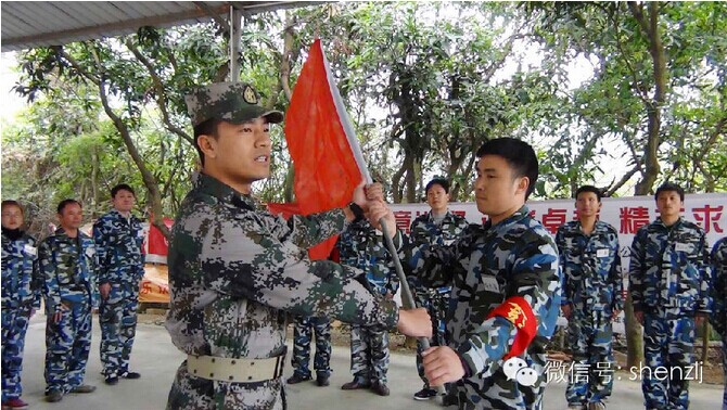整个集体被随机分成了四个小队,每个小队都选举了各自的队长、秘书、督察、后勤,并建立了自己的队旗、口号、队歌,经过一番艰难的考验,“卓越队”“冠军连”“猛虎之师”“冲锋队”都扬起了自己的队旗,看着队旗,每个人的心都澎湃不已,这两天我们将为之而战!