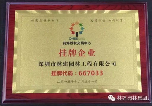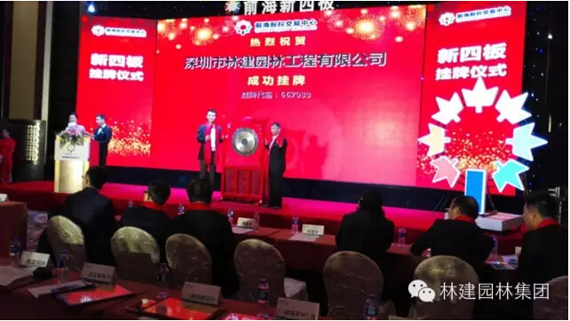 恭喜深圳市园林工程有限公司在前海股权交易中心成功挂牌 园林、鼎天传媒、前海健康来啦科技、深圳金京鑫电子商务、浙江汇特动物药业等企业上台接受挂牌。 臧总及吕总进行挂牌敲锣仪式,挂牌完满成功! 园林挂牌代码:667033 随着前海新四板成功挂牌,园林也开始了新的征途,在以后的发展中,园林全体员工将秉着“共同发展、成就你我、永创辉煌”的企业使命,以项目质量求生存,以精品工程树形象,为中国的园林事业再添一点绿!