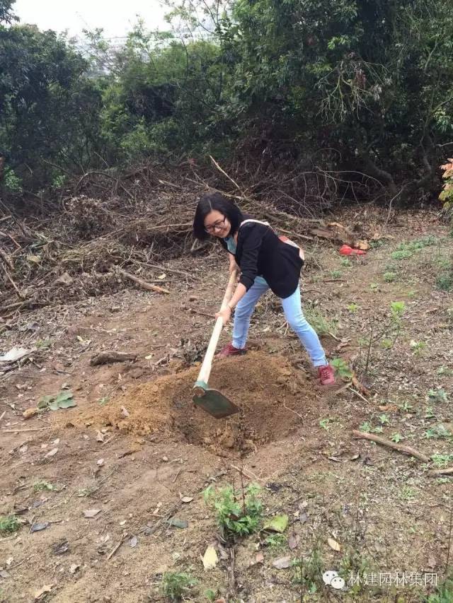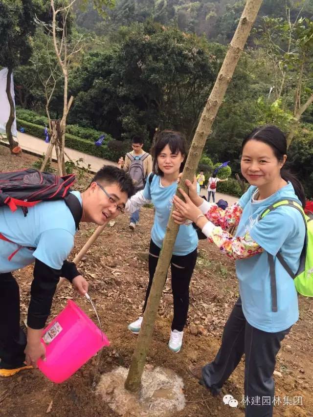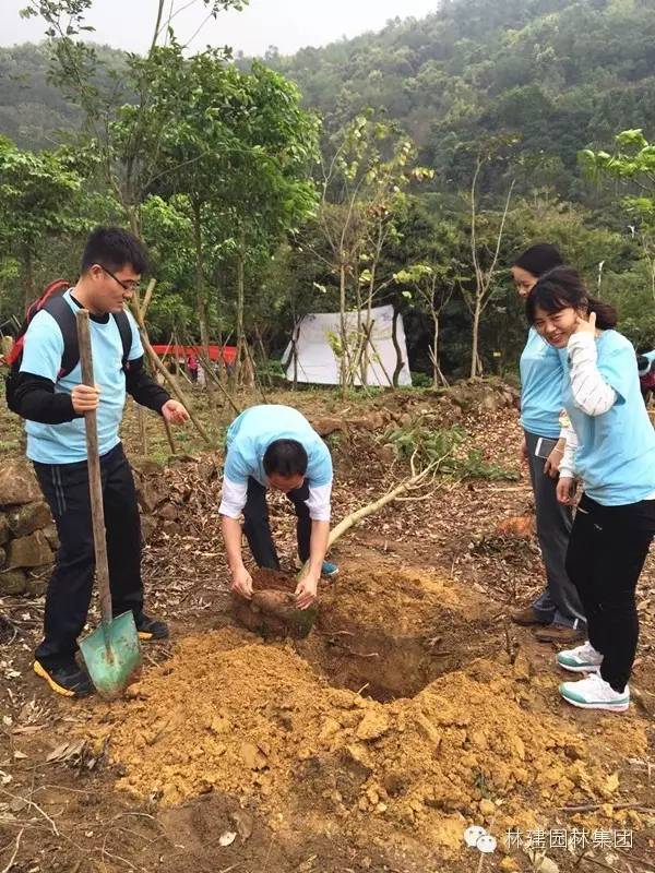 三月植树月,小雨淅淅沥沥,万物也渐渐复苏。深圳市园林工程有限公司员工在3月20号来到深圳的福地——福永凤凰山,这已是公司举办的第六年植树活动了。 兴高采烈的到达植树现场....... 活动开始,大家首先找到自己心仪的位置,开始拿工具,搬树苗,不亦乐乎。 接下来,看看小伙伴们是如何完成一棵树的种植的? 第一步,挖坑 第二步,放树 第三步,填土 第四步,固定 第五步,浇水 这样,就大功告成喇!在一片欢声笑语中,不知不觉已经到了中午时分,树苗也基本种植好了,小伙伴们看着自己栽种的树,仿佛也种下了一份希望。若干年后再来看你种植的树,那时候,你的心情会是怎样呢?是否会觉得它像你孩子一样在成长着? 为了纪念这美好的一天,小伙伴们纷纷留影,期待未来的每一天都像这里的树木一样朝气蓬勃! 最后,小伙伴们一起来个大合照,我们明年再见!